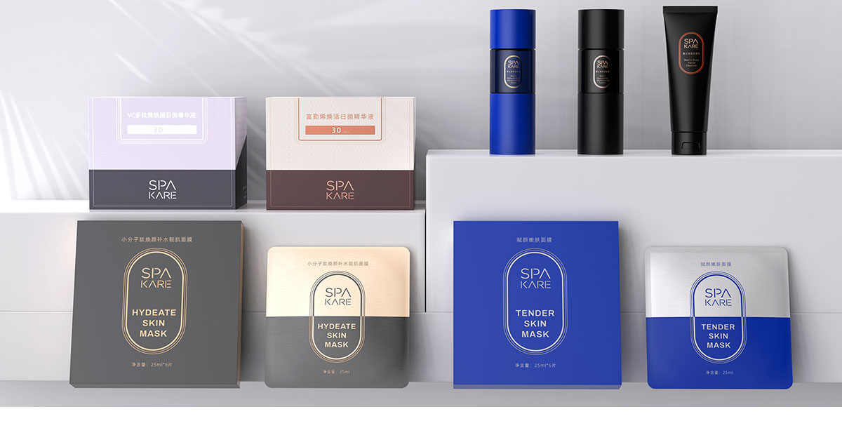 成熟穩(wěn)重的配色方案,彰顯品牌穩(wěn)重的氣質(zhì)。凹凸的肌理強(qiáng)化產(chǎn)品質(zhì)感,前衛(wèi)的英文字母排版,緊跟時尚前沿。精華與面膜的設(shè)計貫徹一致風(fēng)格,形成統(tǒng)一的視覺風(fēng)格。