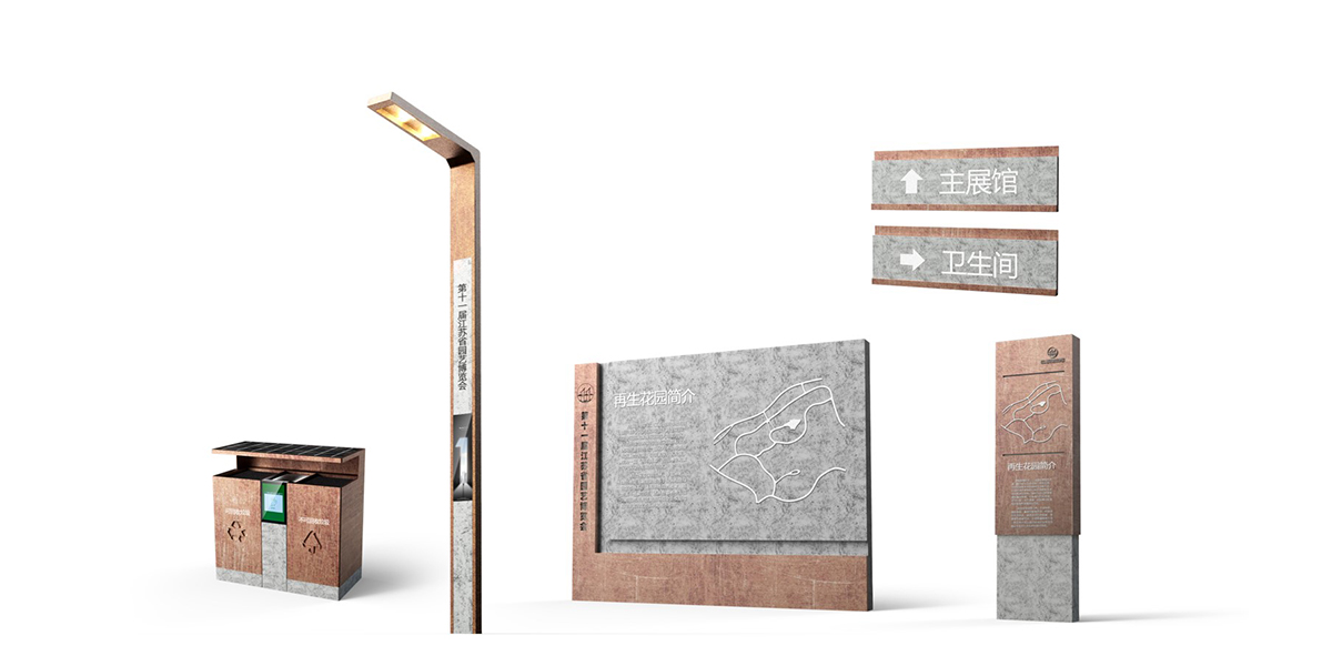 在本方案中,設計師充分利用能體現(xiàn)主展館的“工業(yè)之風”特色并汲取“城市剪影”的相關(guān)元素,加入一些新的元素,來完成智慧路燈垃圾箱及導視系統(tǒng)設計,為游客帶來豐富且多層次的視覺美感。