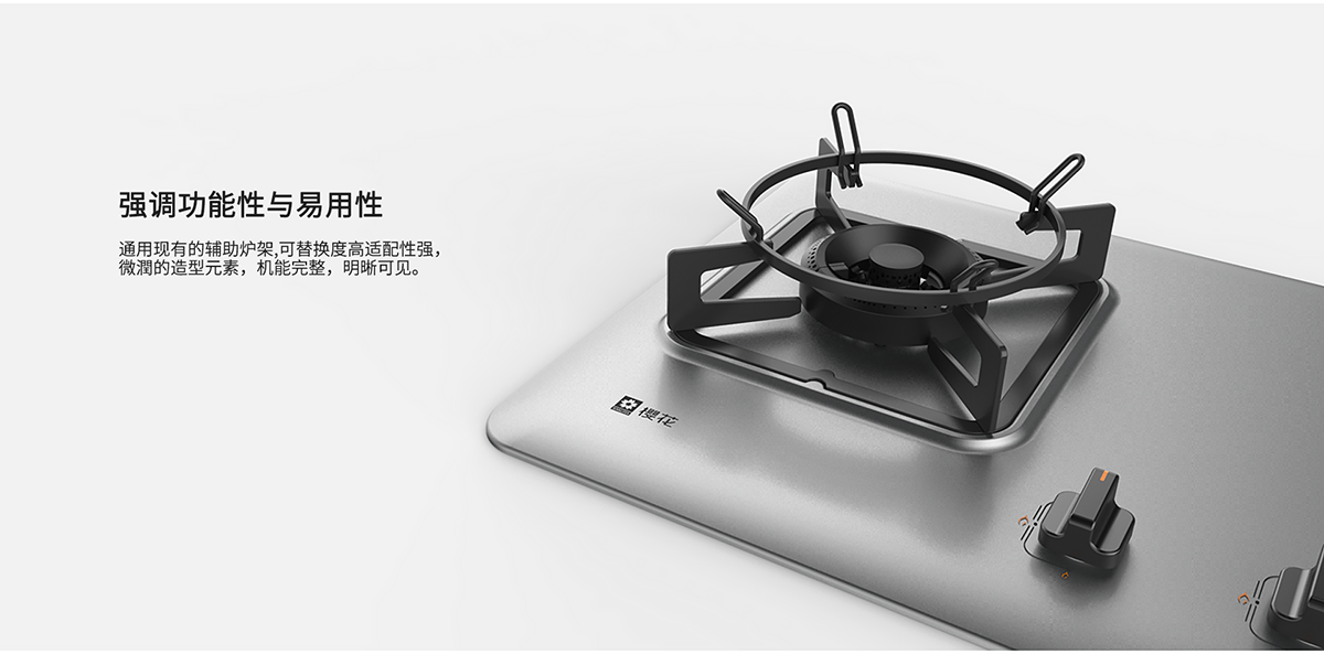 燃?xì)庠钆c電磁灶一體化的組合設(shè)計(jì)方案,以數(shù)字顯示的模式傳達(dá)出獨(dú)特的交互體驗(yàn),滿足不同的烹飪需求且最大限度地節(jié)省能源。產(chǎn)品從整體到局部均散發(fā)著設(shè)計(jì)的獨(dú)有魅力,平滑的亞克力拋光面板與拉絲的金屬邊緣相得益彰,在理性中散發(fā)著柔和,簡(jiǎn)潔、大氣的工業(yè)之美油然而生。