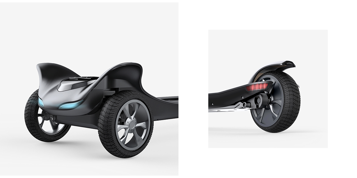 該產(chǎn)品的設(shè)計(jì)顛覆了傳統(tǒng)滑板千篇一律的古板設(shè)計(jì),將龍的形象融入產(chǎn)品中,線條流暢富有動感,前后車燈與滑板融為一體,能夠?qū)崟r(shí)顯示電路與速度,操作簡單,彰顯個(gè)性。 將文化形象融入產(chǎn)品中,在保證精良的產(chǎn)品品質(zhì)的同時(shí),承載文化的內(nèi)涵。
