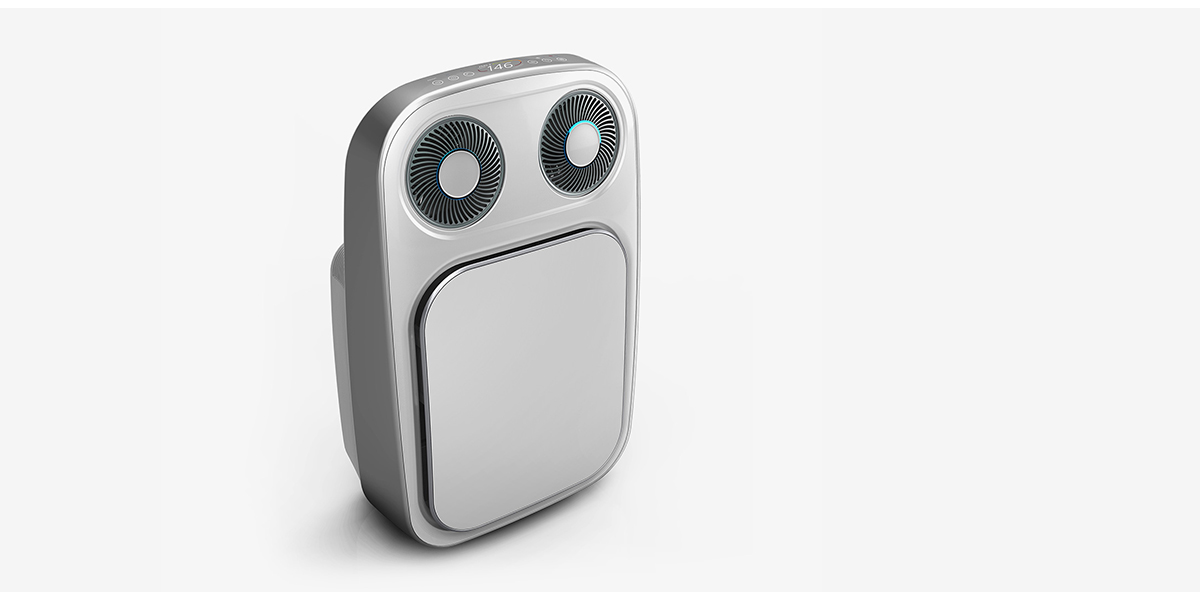 該設(shè)計(jì)主要通過設(shè)計(jì)研究、要點(diǎn)分析、概念設(shè)計(jì)和解決方案四個(gè)過程進(jìn)行。設(shè)計(jì)師針對中國消費(fèi)市場的特點(diǎn)和中國空氣質(zhì)量的問題進(jìn)行了大量而深入的前期調(diào)查,并形成了多篇調(diào)查紀(jì)要和紀(jì)實(shí)圖片,再經(jīng)過上百張草圖方案與幾十款進(jìn)階方案的推演,最終形成了具有針對性的創(chuàng)造性新品?!?/p>