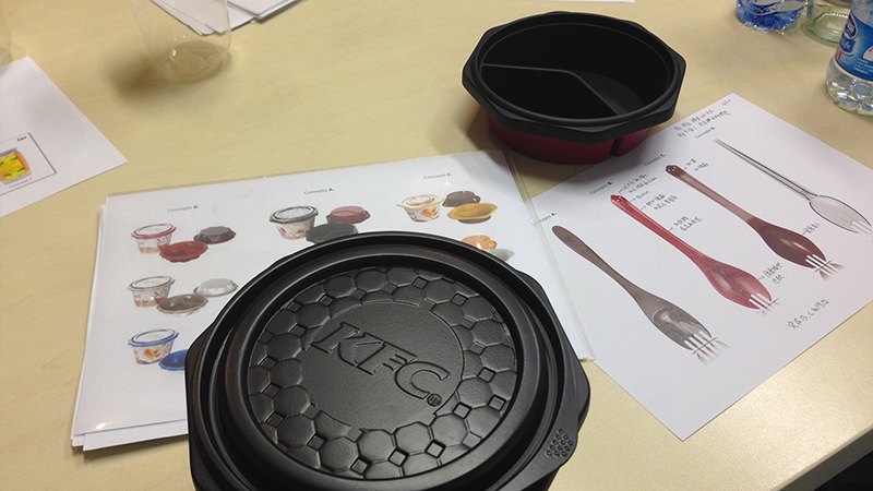 開始設(shè)計之初,設(shè)計師通過約見和暗訪兩種方式,實地觀察了肯德基幕后廚房,對中式快餐現(xiàn)有的制作流程進行了深度了解,發(fā)現(xiàn)不合理現(xiàn)象,例如現(xiàn)有飯盒在層疊狀態(tài)下不易取出,這個小小的繁瑣動作極大的影響了工作人員配餐的速度,在這種客流量巨大的快餐市場中,每一秒鐘都必須珍惜。設(shè)計師還指出了其他可以通過設(shè)計修正的創(chuàng)新點,通過這些創(chuàng)新點,來指導(dǎo)我們未來的設(shè)計方向。(下圖)