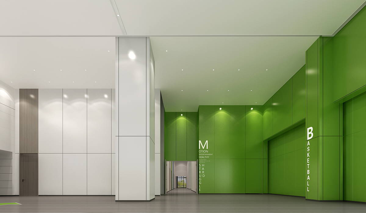 本籃球場內(nèi)除了按照國際籃球聯(lián)合會制定的各區(qū)間設計標準進行,在設計之初還充分考慮到燈光、配置等因素,并通過不同的元素點綴支撐整體建筑,且選擇了具有運動、活力的色調(diào),以表達此籃球運動的魅力。