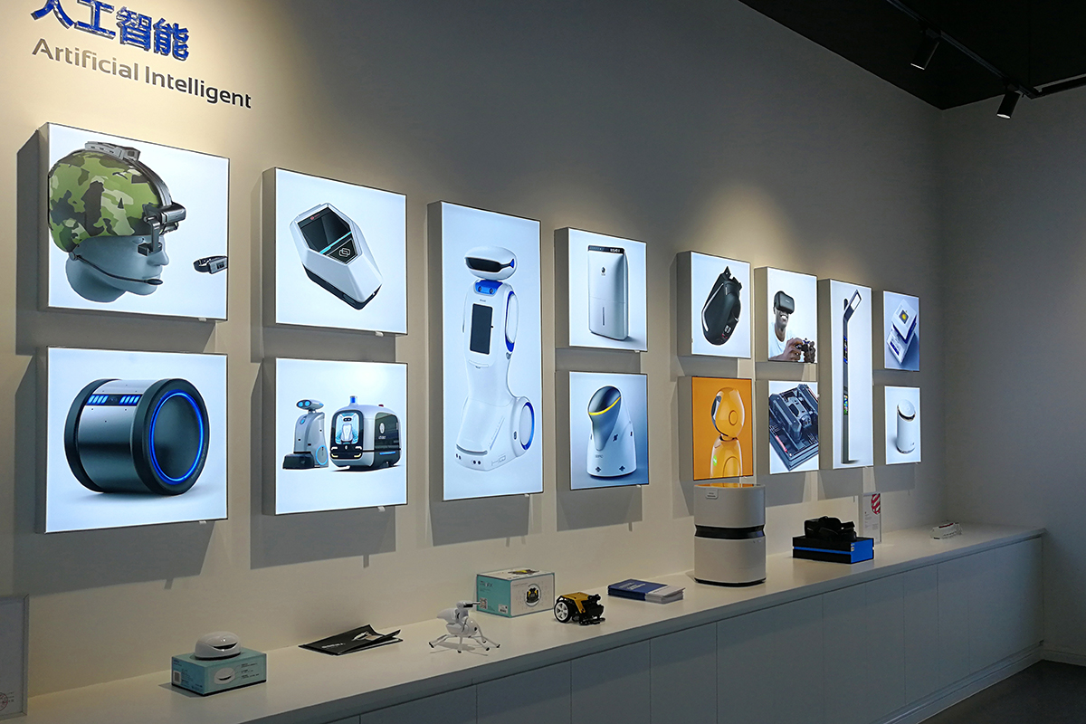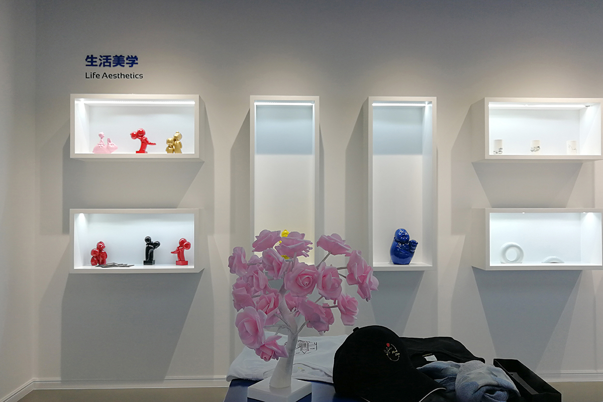 建筑采用了藍(lán)色框景作為局部墻面的面層表現(xiàn),藍(lán)色鮮明的品牌色彩與其測(cè)剖面線條的疊加加強(qiáng)了原有設(shè)計(jì)的張力與節(jié)奏感的塑造。